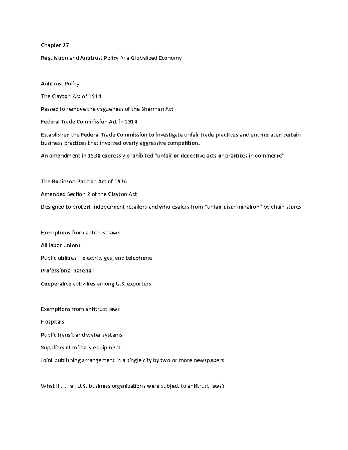 Chapter 27 Lecture Notes 5 Chapter 27 Regulation And Antitrust Policy In A Globalized Economy Studocu